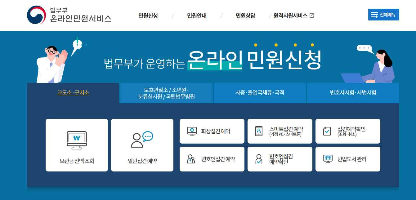 교도소 및 구치소와 관련된 다양한 민원을 온라인으로 처리할 수 있습니다.